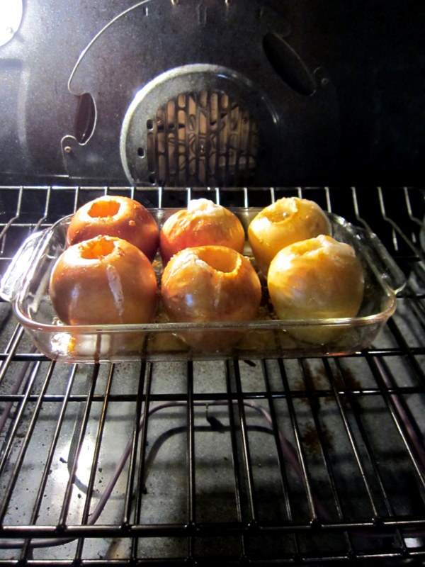 4 medium to large baking apples (Romes are great but hard to find; Golden Delicious work well and hold their shape but will split their skins.)