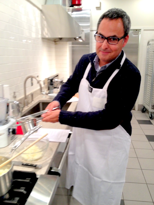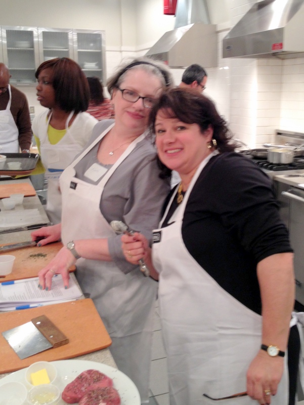 This is my friend J. He’s out of his comfort zone here, wearing an apron in a cooking class and brandishing a ricer. The kitchen is not his natural habitat, and yet here he’s making a dish of creamy potatoes flavored with mascarpone cheese and butter that will be the best-tasting thing produced from a Las Vegas-styled menu of steakhouse favorites.