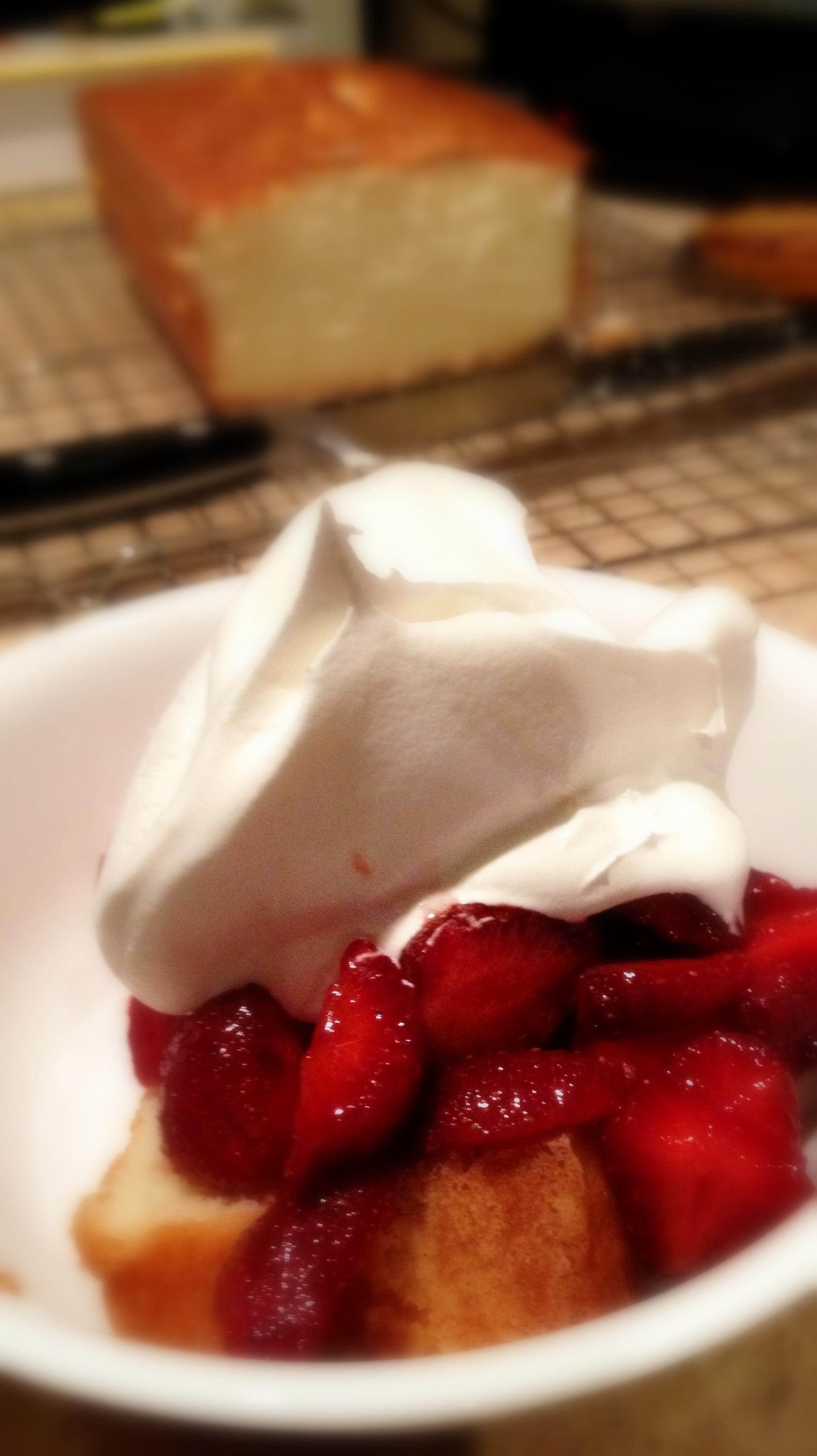 Serve with sugared berries and whipped cream. (If you must know, that’s Cool Whip in the picture. I have a thing for certain fake foods like that. I also prefer Mrs. Butterworth’s Syrup over real maple syrup on my pancakes and waffles. Go figure.)