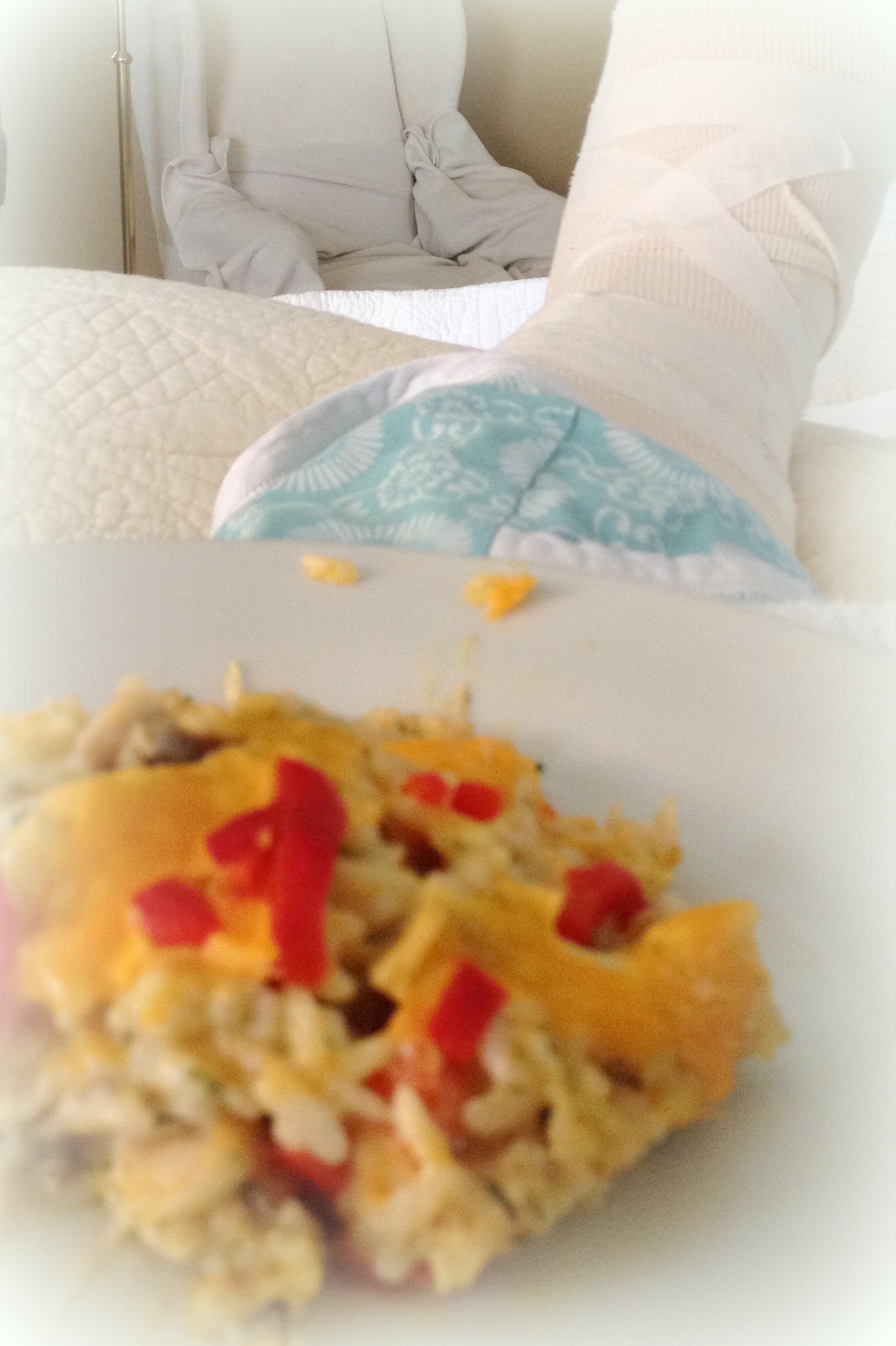 I have one working foot at the moment, which means I’m not cooking much. Because of surgery a couple of weeks ago, I’m sporting a bulky cast, and my mobility depends on a knee scooter, crutches, and a patient husband who doesn’t mind hauling all of the above here and there — on the rare occasion that I actually must leave the house. My temperament is well-suited to sequestering, actually.