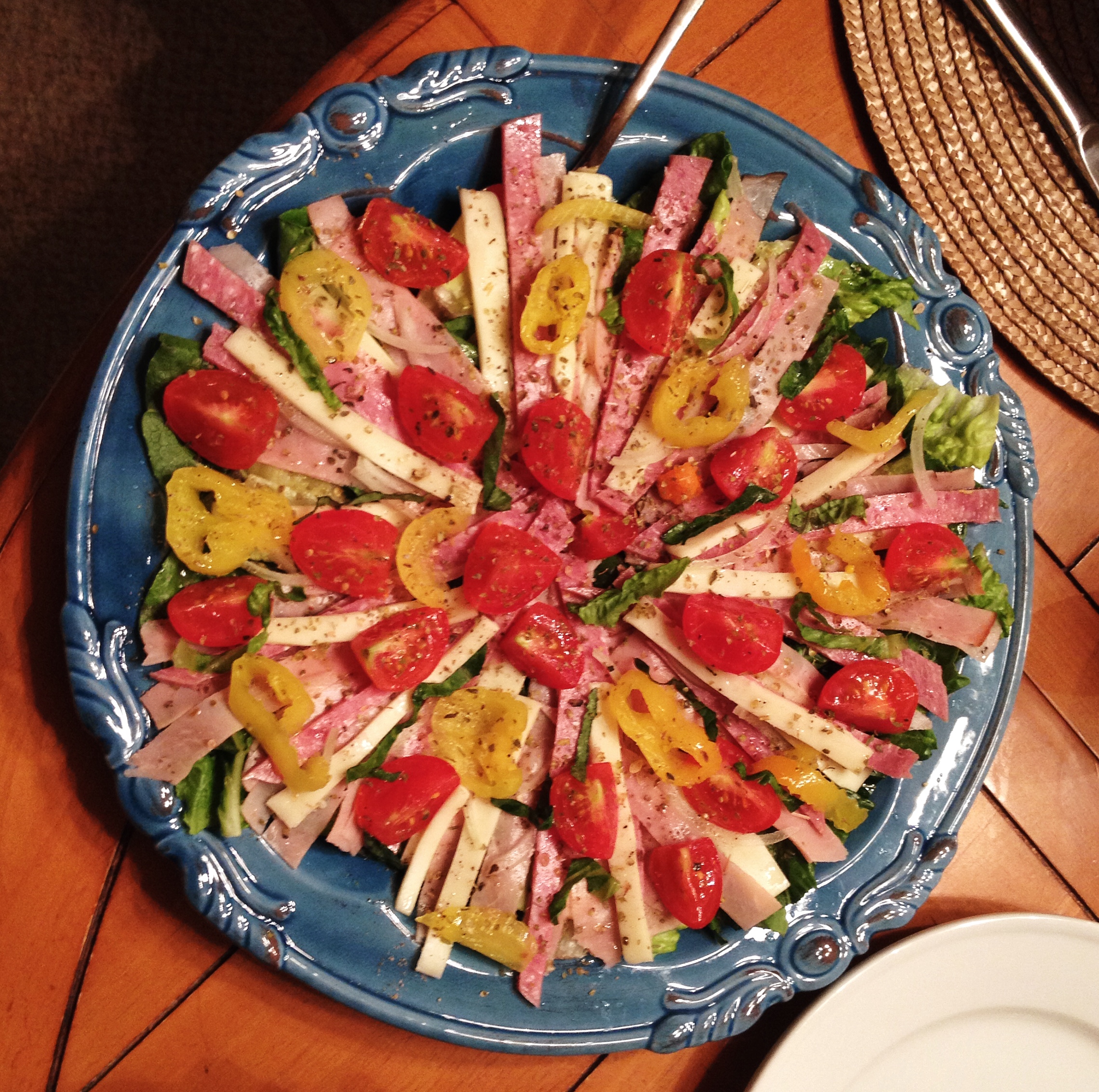 This antipasto platter made by G, the teenage daughter of dear friends who were hosting my husband and me for dinner. It was a work of art, beautiful to look at and delicious to eat.