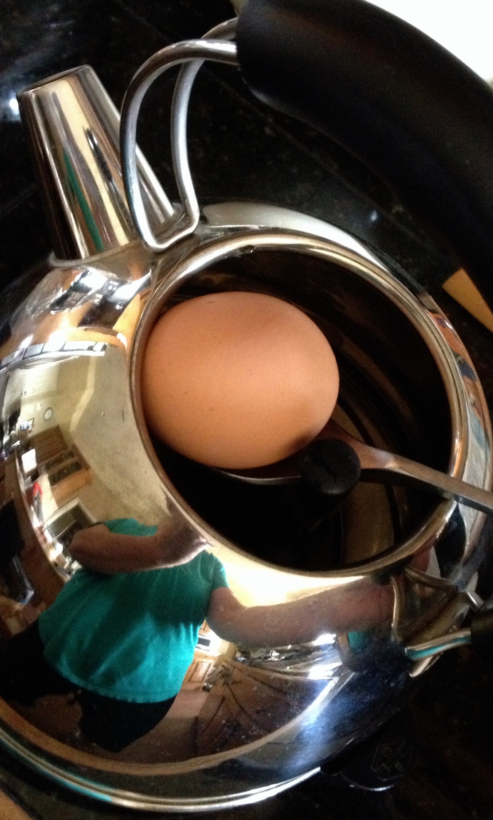 My favorite kitchen hack (this week) is using an electric kettle to make hard-boiled eggs. (Thank you, Alton Brown.) Fill the kettle just below capacity with tap water. Add several large eggs very carefully, lowering them into the water individually on a spoon. (Make sure the water level hasn’t risen above the maximum mark. Adjust, if necessary.) Put the lid on the kettle, turn it on, and once you hear the distinctive “click” that signals the boiling point being reached (when my Cuisinart kettle automatically turns off), set a timer for 10 minutes, and let the eggs sit. Once 10 minutes have passed, pour out the hot water water and replace with cold water to keep the eggs from overcooking. Transfer the eggs to a bowl of cold water to continue to cool. You’ll have perfectly hard-cooked eggs without the hassle of watching a pot for signs of boiling. This is a high-risk, high-reward endeavor. If you boil eggs that perhaps got handled a little roughly on their way into the kettle, causing one or more to crack, start over with intact eggs. Cleaning the kettle after an egg has leaked inside while being boiled is no fun. Ask me how I know. And, yes, I use that same kettle every morning to make tea for breakfast. There’s no flavor transfer from the eggs.