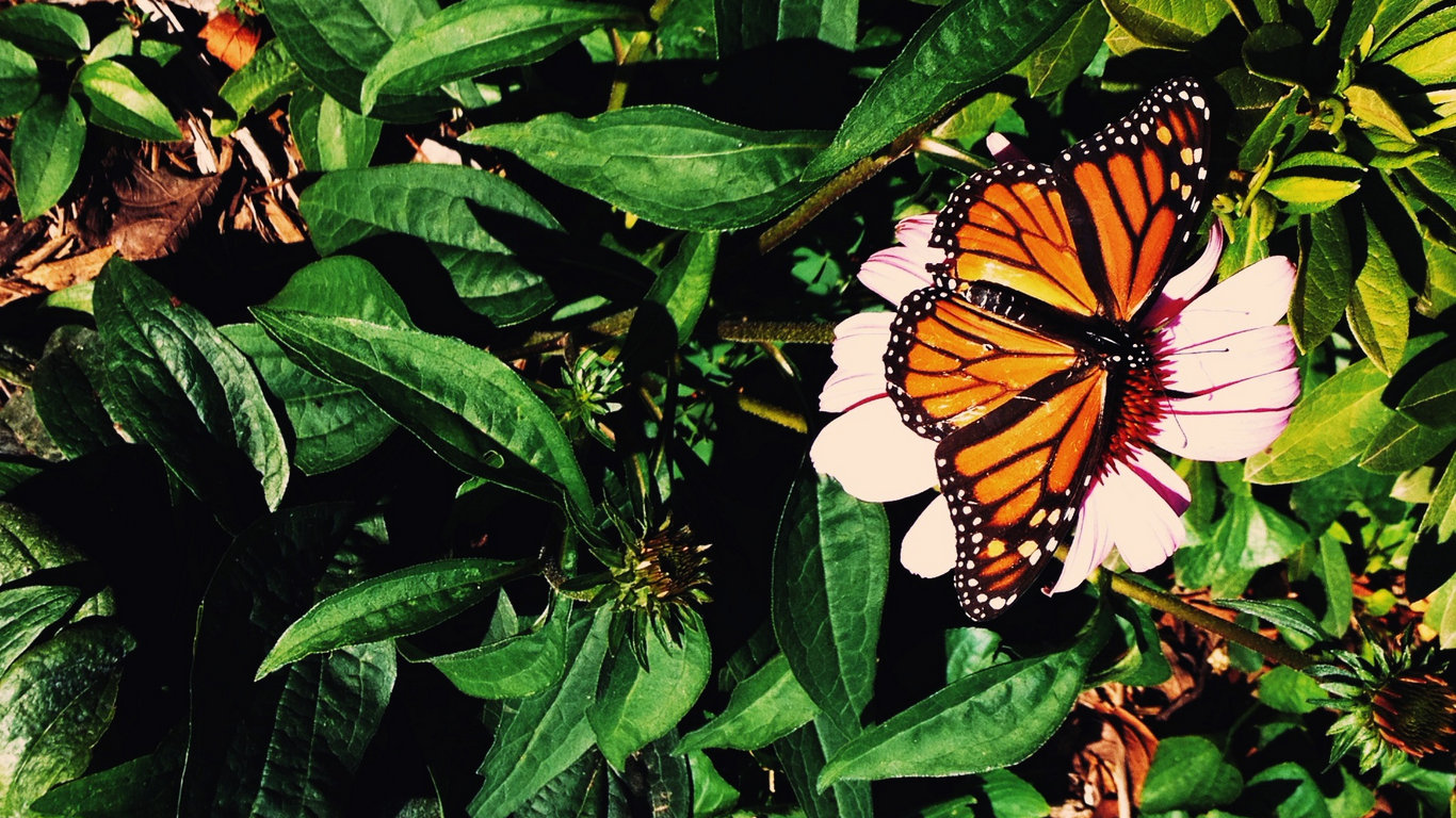 A monarch butterfly stopping for lunch at a cone flower outside my front door. The migration south is underway.