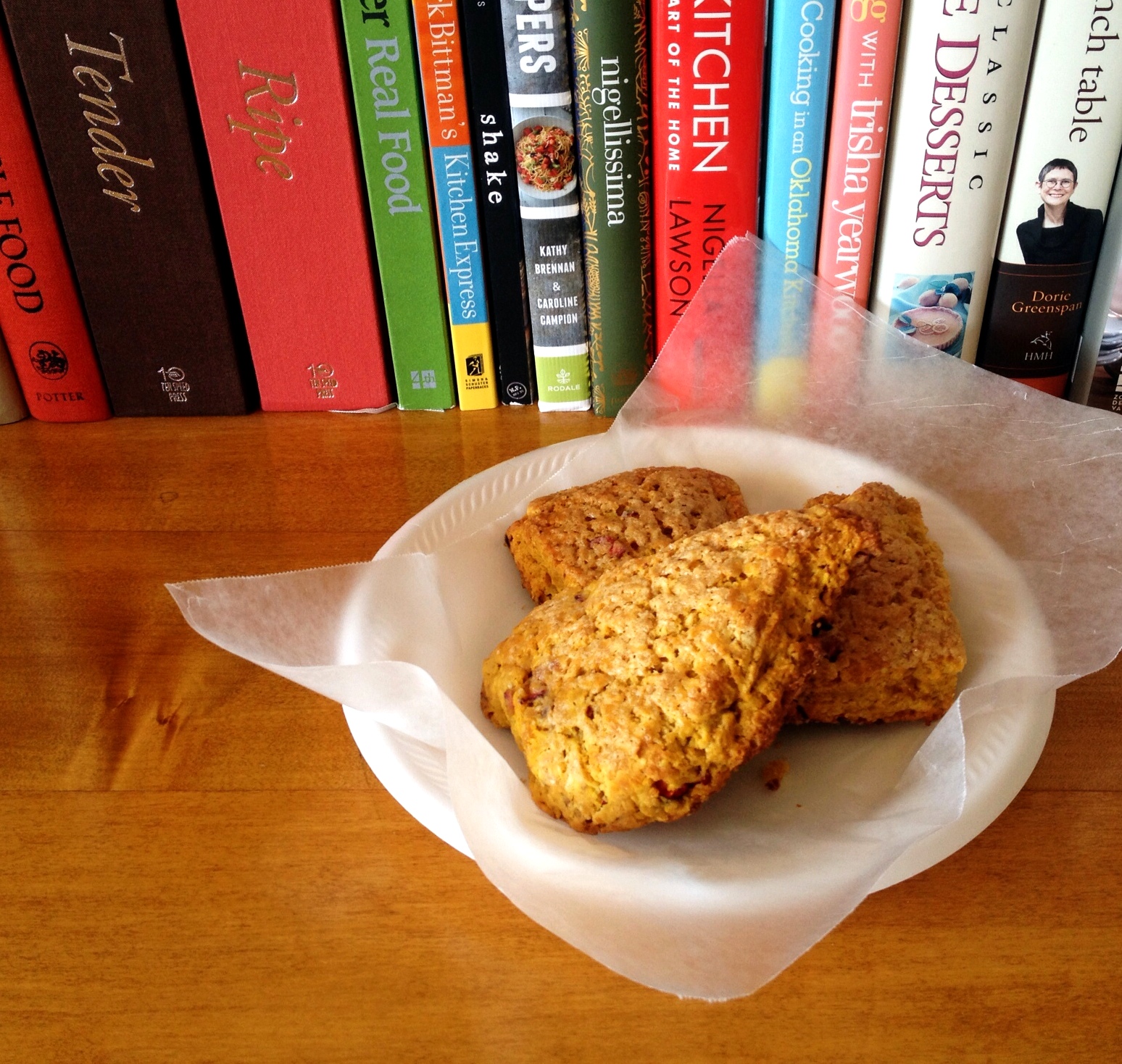 We started the morning with Pumpkin Scones, served with a little cinnamon butter on the side. These were tender and delicious, and I’ll make them again. (Note for next time: try freezing the unbaked wedges overnight, and adjust the baking time accordingly. Might hold their shape a little better in the oven.) Bon Appétit magazine published the recipe in their November 2014 issue. Here’s a link to that page.