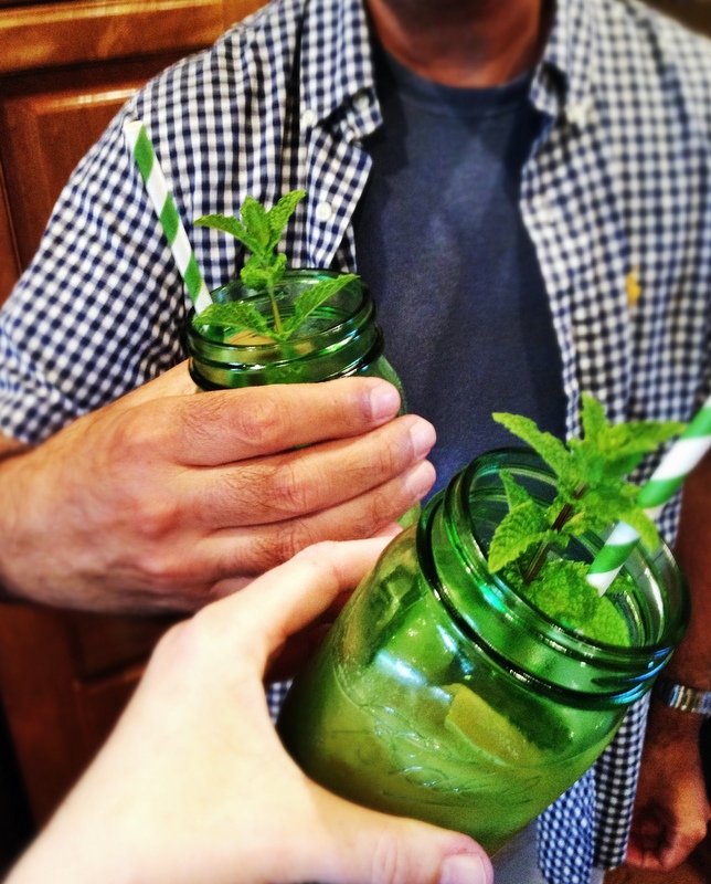 We started our evening fortified with Pimm’s Cups in green canning jars. A good Pimm’s Cup is one of my obsessions. The best version I’ve ever had was served in 2009 at Number Sixteen, an exquisitely stylish and quirky hotel in London. I went there with Last born. The stairs to our room were narrow and steep, angled enough to induce a little thrill of trepidation as we climbed behind a cheerful bellhop lugging our suitcases. But our room at the top of the stairs was lovely, and the Pimm’s Cup served to me later in the ground floor lounge was an experience I’ve been trying to replicate ever since, with mixed results. Last night’s cocktail recipe came from the editor’s letter in the June 2015 issue of Martha Stewart Living. It’s good, refreshing, and not too sweet with the addition of grapefruit soda. I added fresh mint and a strip of grapefruit peel for garnish, but it did not approach the standard set by Number Sixteen. My hunt continues.