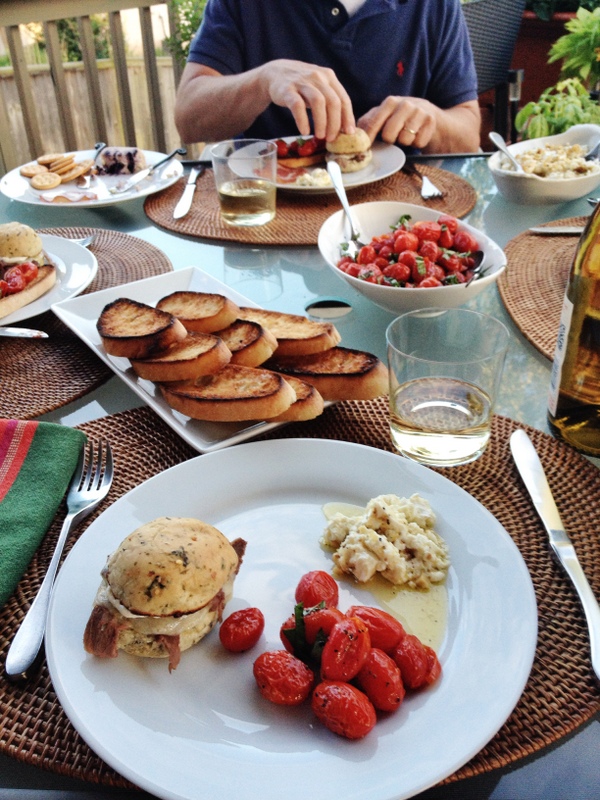 I like people who are adventurous eaters, who don’t mind being guinea pigs for new recipes, and who don’t question a cook who asks them to bring a half pound of roast beef to dinner (sliced on the one, in deli speak). That makes S and J some of my favorite diners on the planet, and they came over last night for an impromptu dinner on the deck. Actually, I promised “snacky foods.”