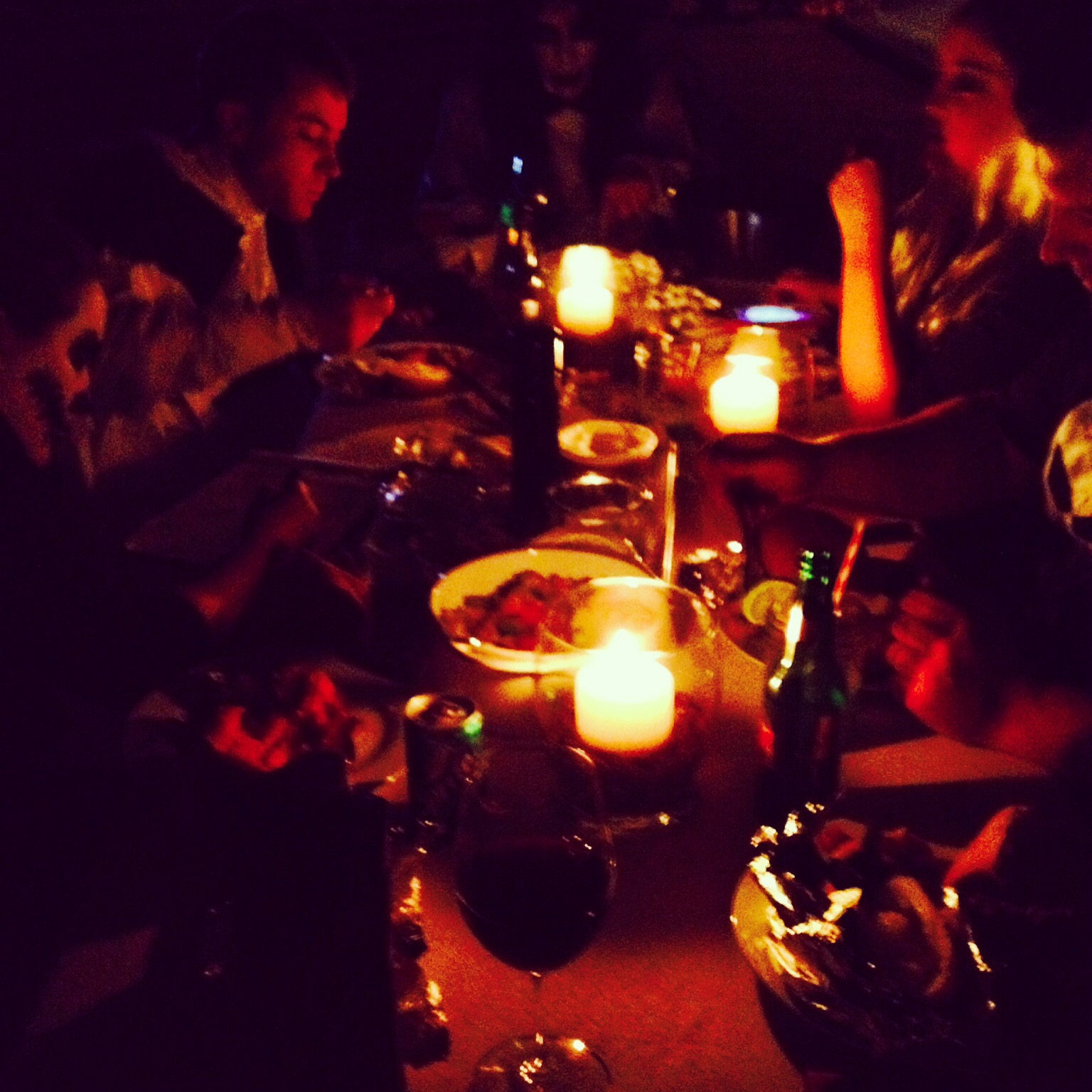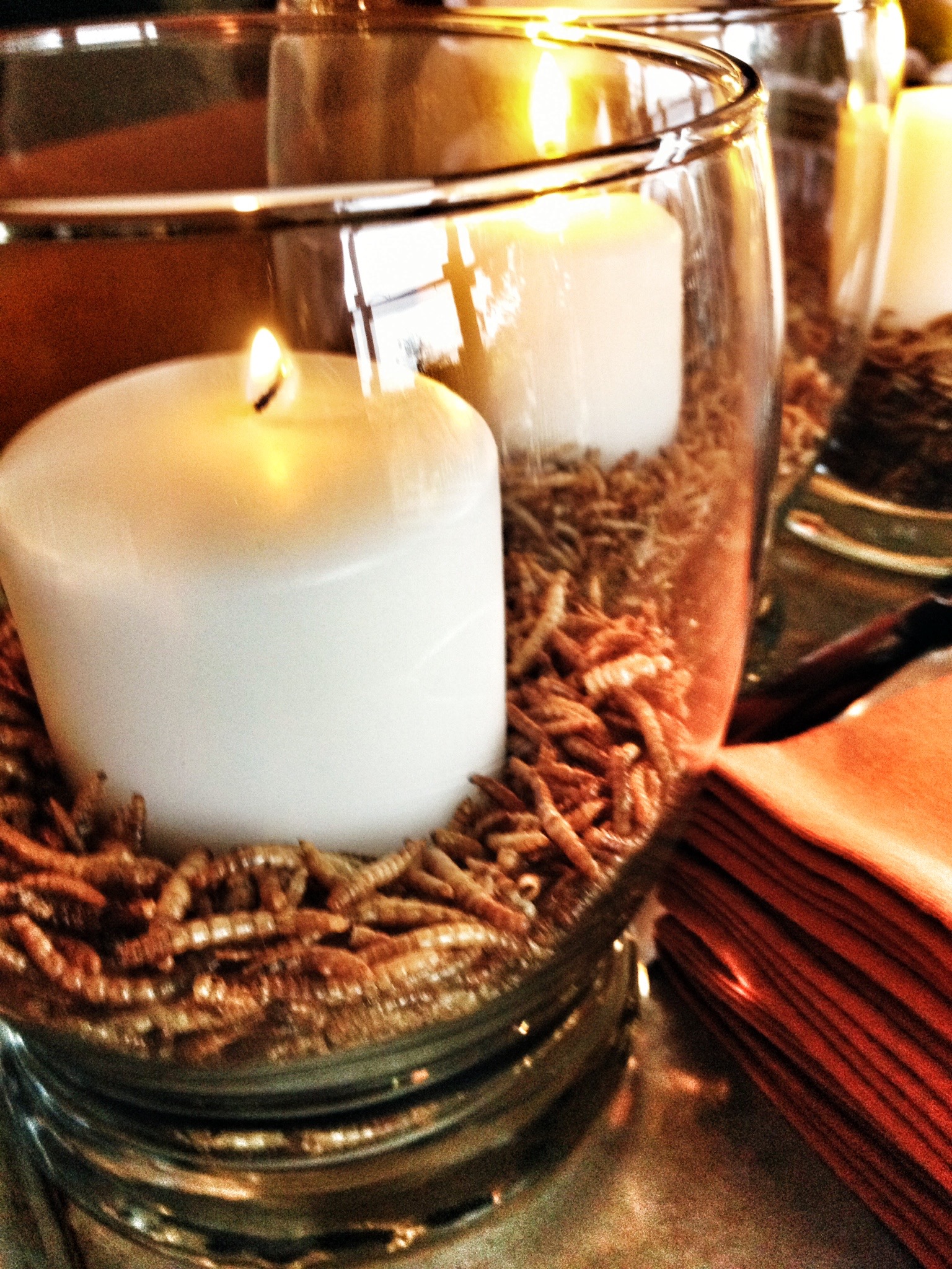 We make this annual celebration fancy with starched napkins, wine glasses, and candles nestled in mounds of mealworms. To be creepy or not is never a question. On this night, creepy is required