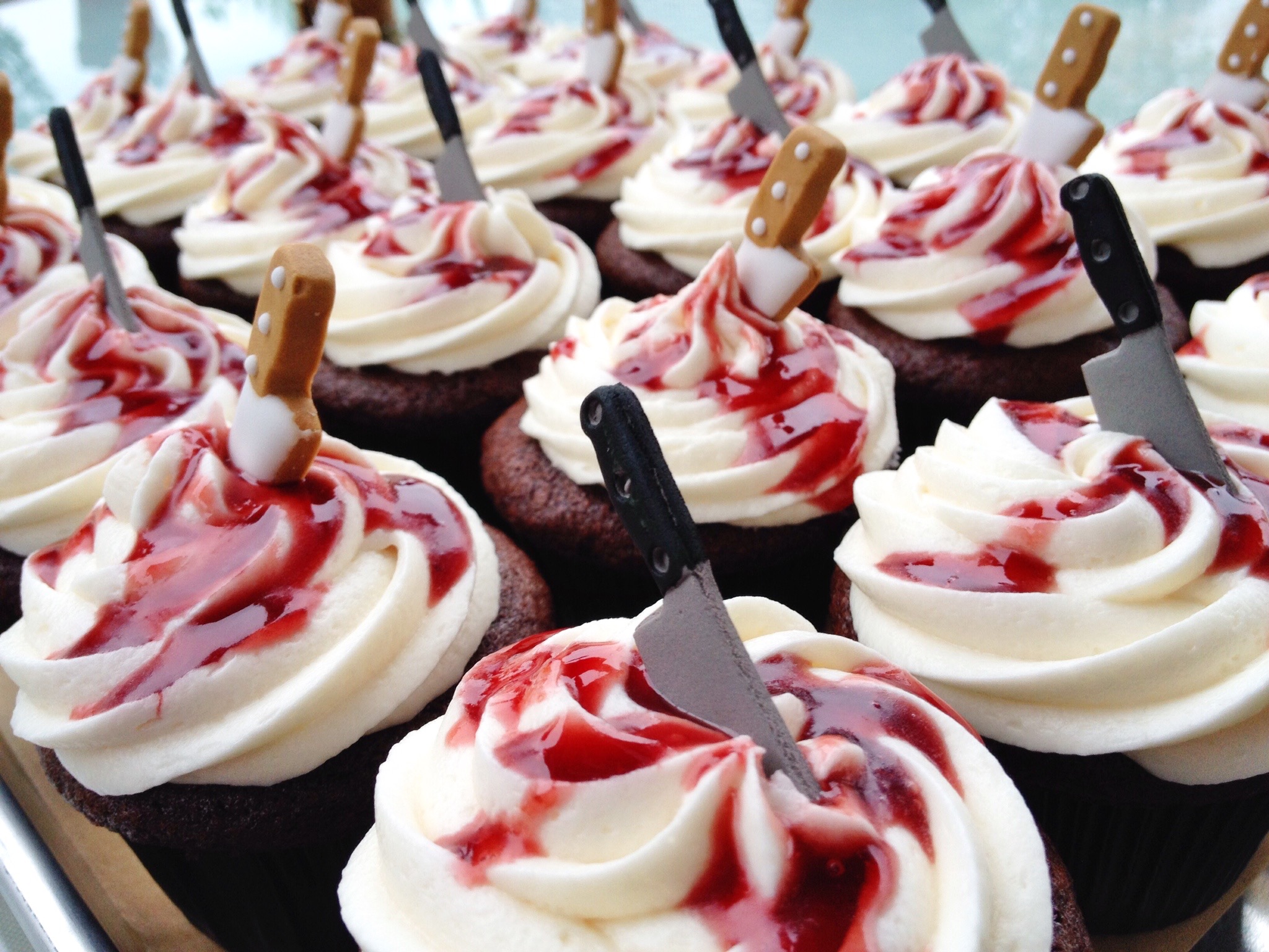 While Last born doled out mini candy bars from her unlucky seat closest to the street, more than a few parents wrangling small children looked longingly at our fine repast: grilled filets mignon, baked potatoes, pork tenderloin, ciabatta rolls, and sautéed zucchini with tomatoes, peppers, and garlic. For dessert, First born and her fiancé made amazing Salted Brown Butter Crispy Treats from The Smitten Kitchen Cookbook by Deb Perelman (a recipe also published on the author’s blog at http://www.SmittenKitchen.com). I murdered cupcakes.